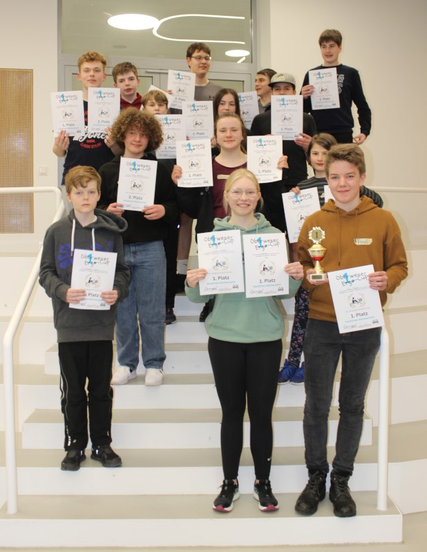 Fünf Siegpunkte für jede Schule hieß es in der Endabrechnung, so dass der gestiftete Wanderpokal eigentlich hätte geteilt werden müssen. Bis zu einer erneuten Herausforderung, auf die alle hoffen, verbleibt er aber jetzt in Holzminden. Noch wichtiger als der Sieg war für alle das gemeinsame Essen, ein sehr leckeres Nudelbuffet vom Restaurant Kiekenstein.