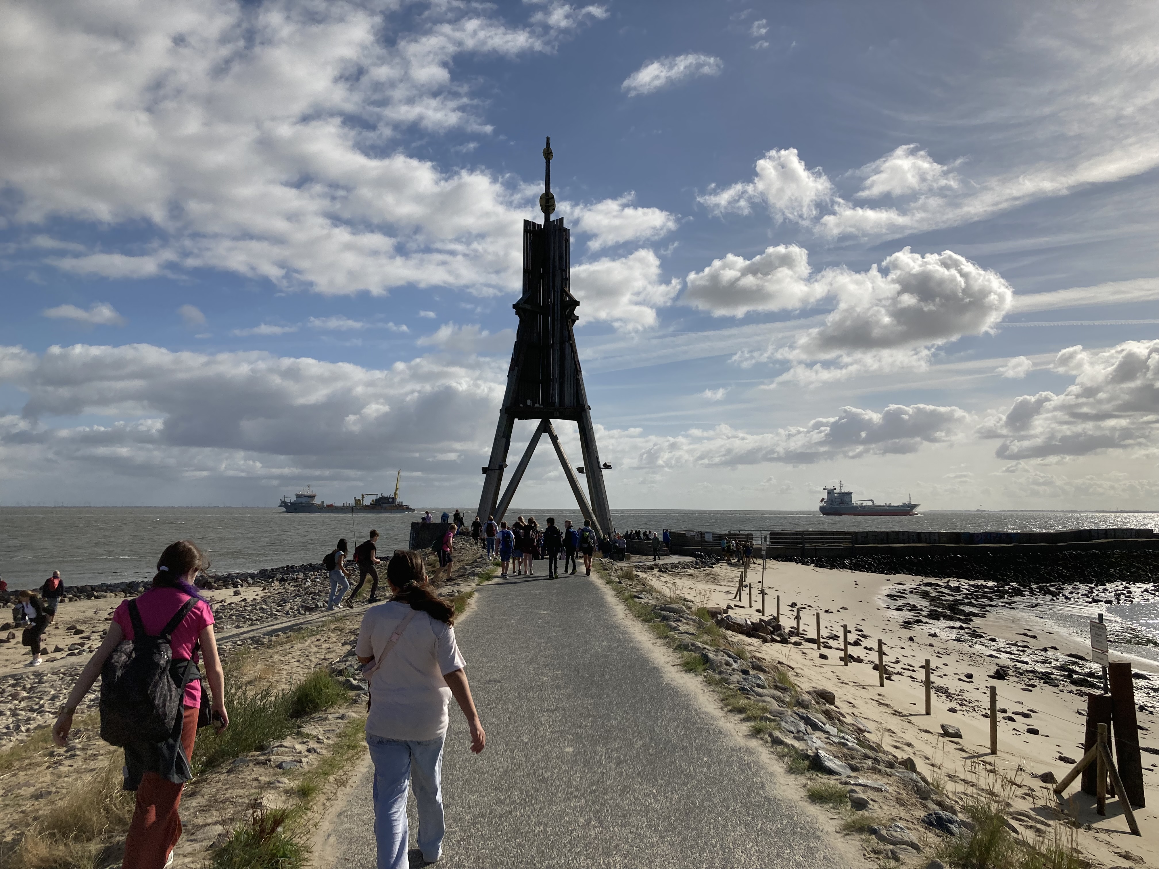 Am nächsten Morgen stärkten wir uns mit einem guten Frühstück für unsere erste gemeinsame Wanderung. Circa eineinhalb Stunden liefen wir durch die schöne, fast schon malerische Strandlandschaft bis zur 1703 erbauten Kugelbarke. Sie diente vorbeifahrenden Schiffen als Orientierungspunkt und gilt als nördlichste Spitze Niedersachsens. Anschließend ging es weiter bis zum Cuxhavener Hafen. Hier bestiegen wir ein Schiff, das uns den Hafen aus der Sicht des Meeres zeigen sollte. Der Seegang war zwischendurch stärker, aber akzeptabel, die Stimmung schwankend, aber nicht zum Kentern verurteilt. Wir lernten viel und vor allem kannten wir nach dieser etwa zweitstündigen Fahrt den Hafen, die Schiffe, die Waren und einige auch das Gefühl von Seekrankheit in- und auswendig.