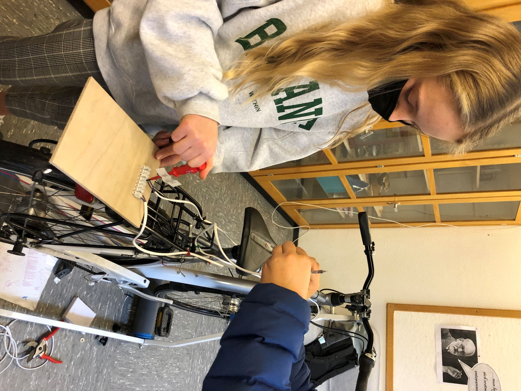 So fragen sich Salome Esau und Julia Herrs (9d), wie man unsere Alltagsbewegungen zur Stromerzeugung nutzen kann. Dazu haben sie verschiedene Dynamos an ein Testfahrrad gebaut, um zu erforschen, ob damit der Akku eines Handys aufgeladen werden kann. Das zweite Projekt will die von der Physik-AG gebaute Wetterstation um einen Sensor für die Messung der Bodenfeuchtigkeit erweitern. Damit knüpfen Timofej Wildt und Nils Holletzek (9b) an ein ehemaliges Projekt an, bei dem es um das Buchensterben am Bielenberg ging und schaffen damit die Voraussetzungen für künftige Forschungen zu den Auswirkungen des Klimawandels auf die Natur vor der Haustür des KWG.