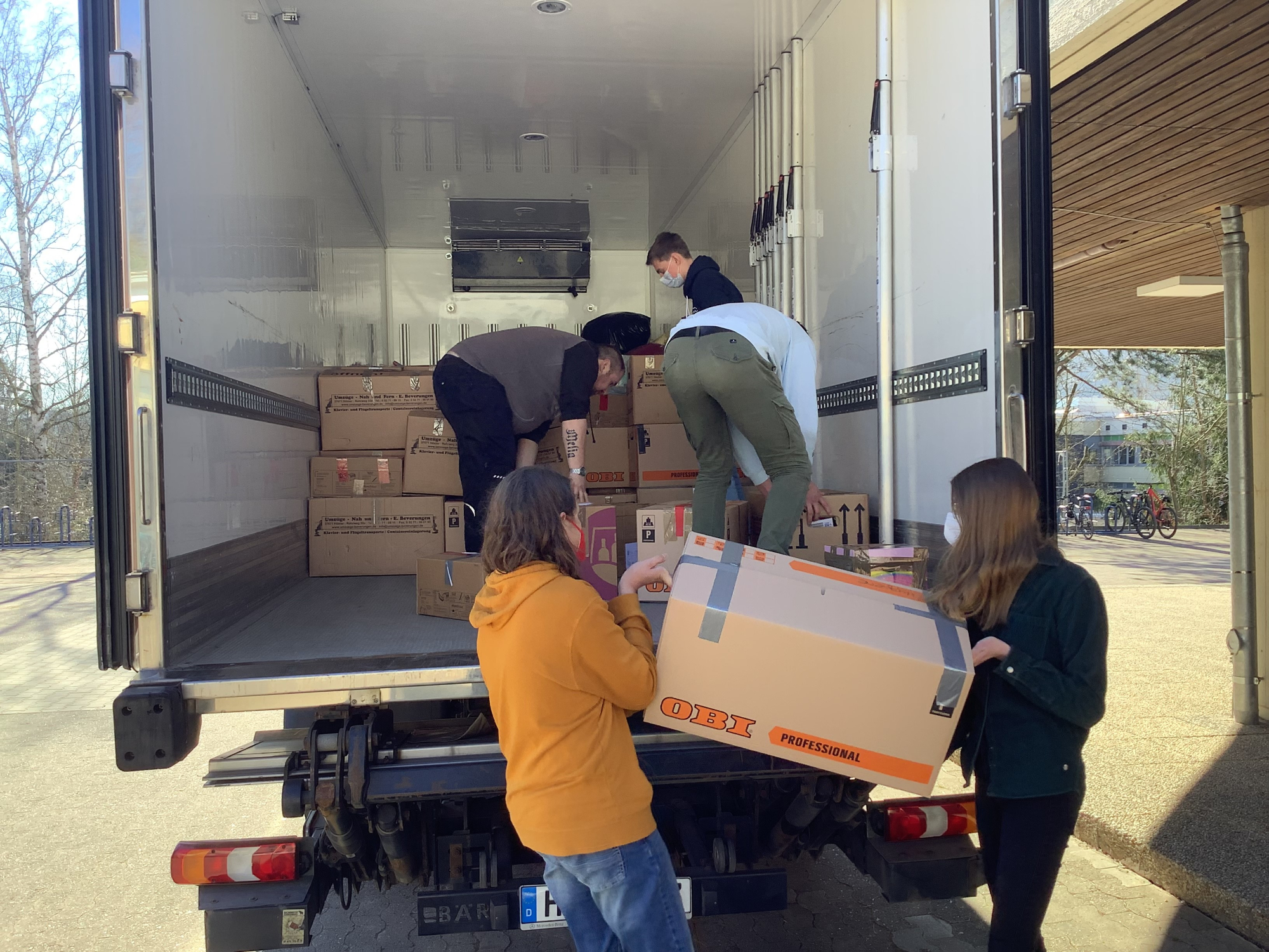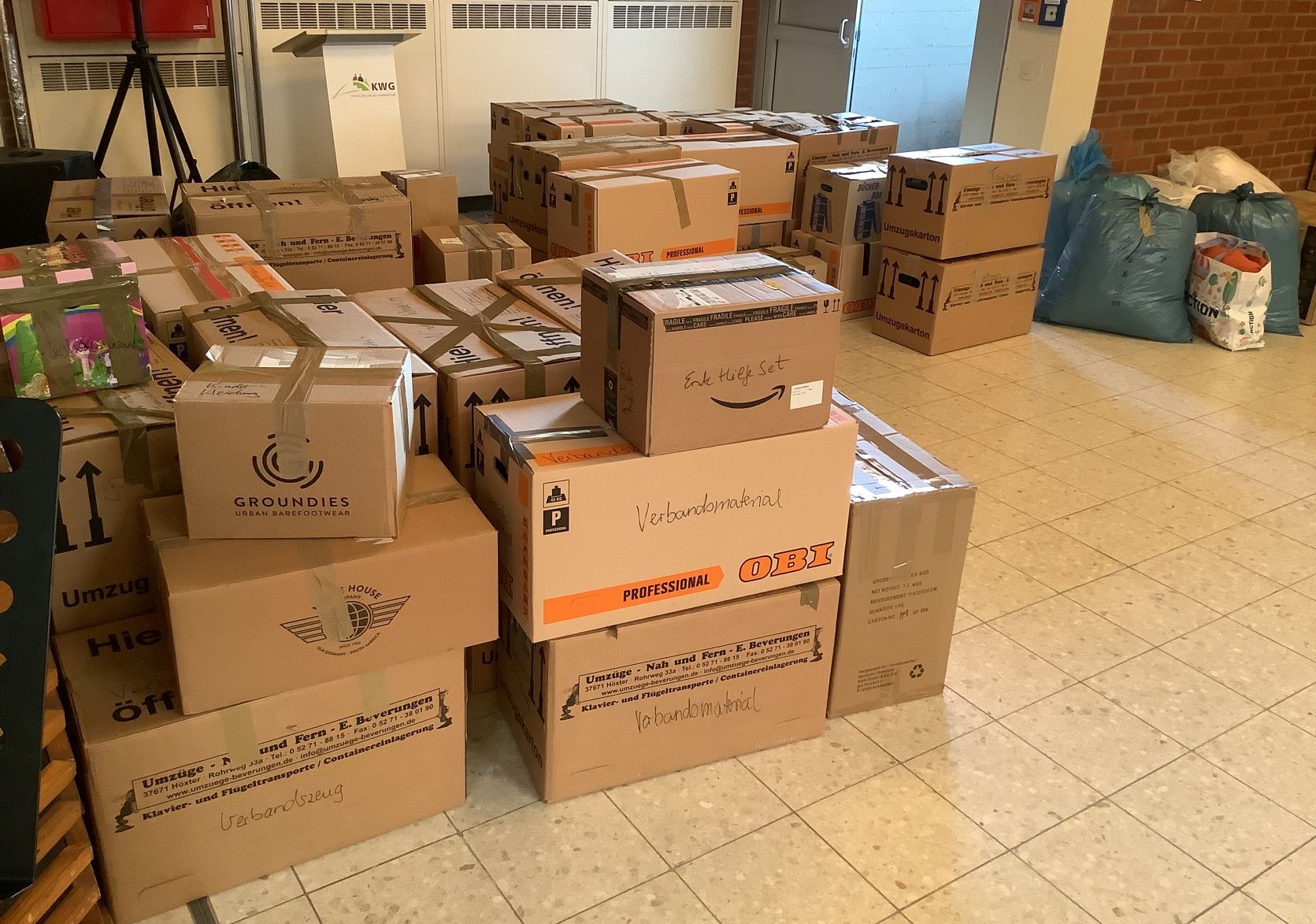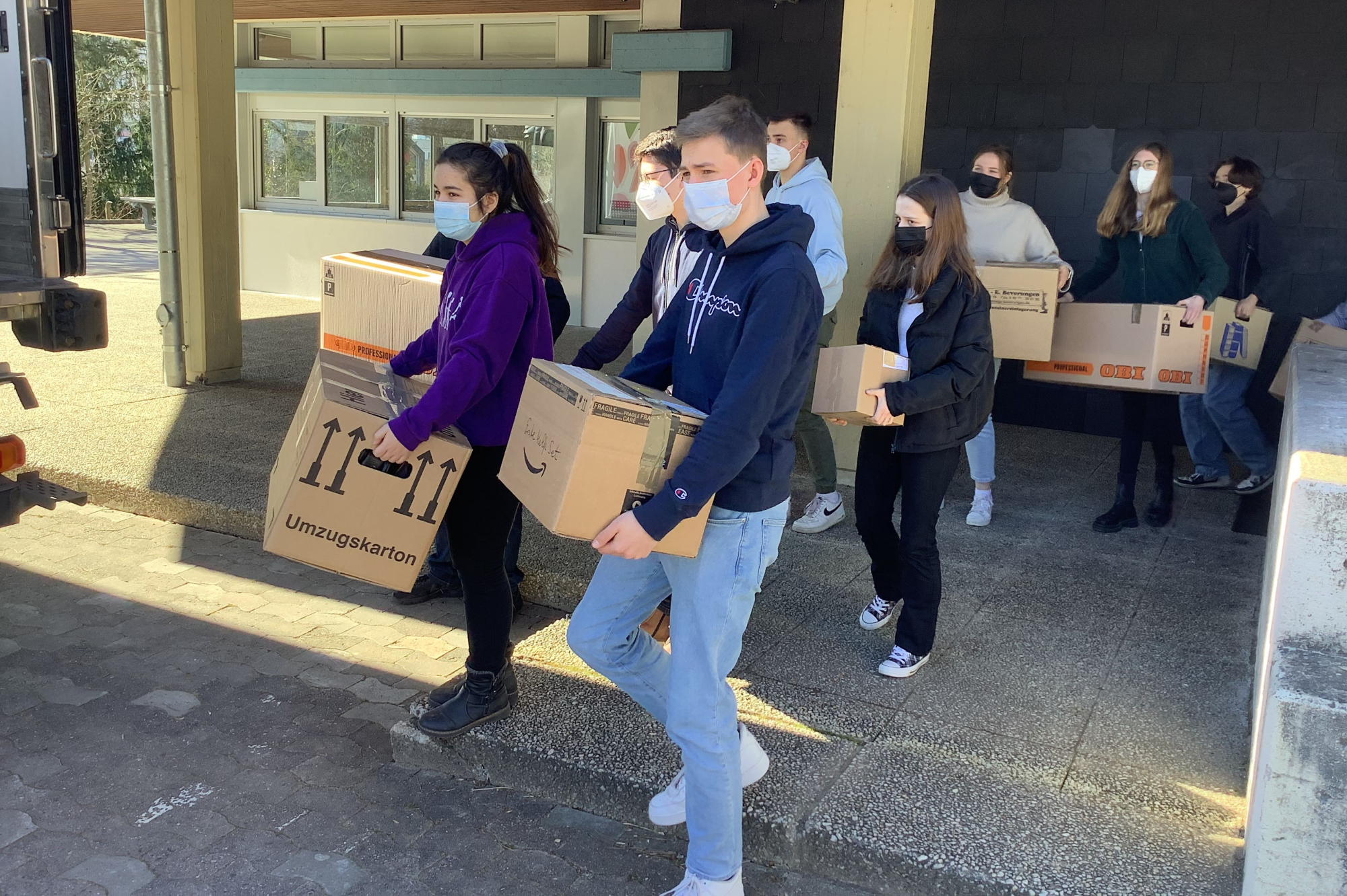 Schnell wurde in den letzten Tagen bei immer mehr Mitgliedern der Schulgemeinschaft deutlich, dass man den Menschen in der Ukraine nicht nur in Gedanken und mit Solidaritätsbekundungen nahe sein möchte, sondern ihnen auch konkret helfen will. So fanden nun erste Hilfsaktionen statt, um dabei mitzuhelfen, das Leid der Flüchtlinge und der Zivilisten in der Ukraine zumindest ein wenig zu lindern.