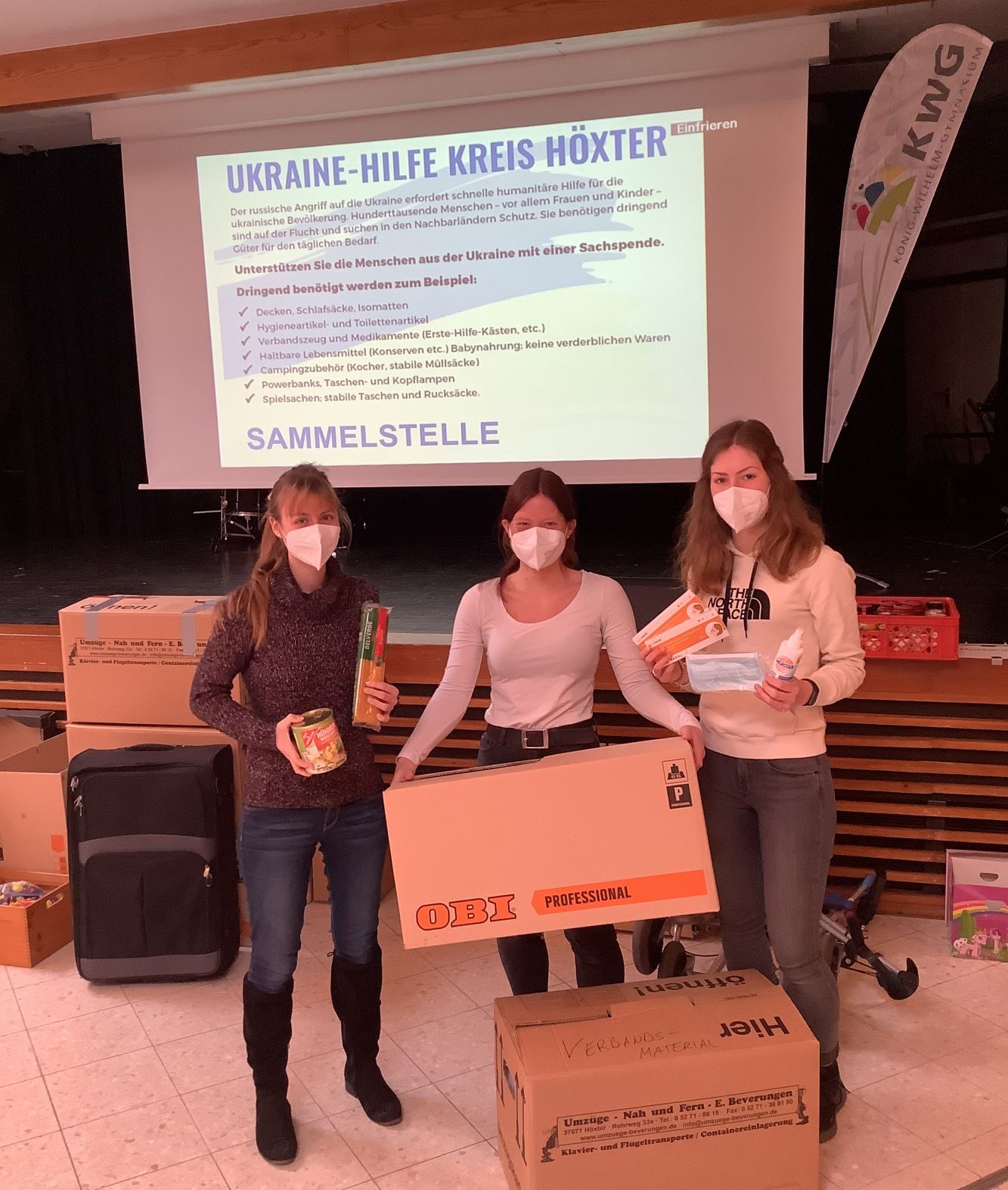 Das KWG beteiligte sich an der Spendensammelaktion des Kreises Höxter unter der Schirmherrschaft des Landrats Stickeln, des Rotary-Clubs Höxter und ortsansässiger Firmen. Mit Hilfe der von den Firmen „Obi“ und „Umzüge E. Beverungen“ gespendeten Kartons konnten die gesammelten Sachspenden sicher verpackt und verladen werden. Lehrkräfte, Eltern und (ehemalige) Schülerinnen und Schüler fanden sich spontan bereit, die Aktion in ihrer Freizeit zu unterstützen.