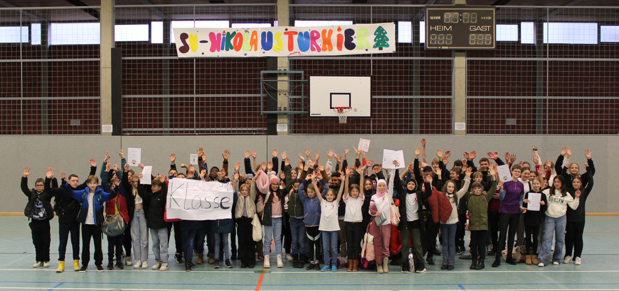 Seit vielen Jahren ist das SV-Nikolausturnier ein fester Bestandteil im Schuljahr des KWG. Auch in diesem Jahr waren wieder alle Klassen der Jahrgangsstufen 5 bis 7 dabei, um einen zusätzlichen Wandertag für die Klasse zu erspielen.